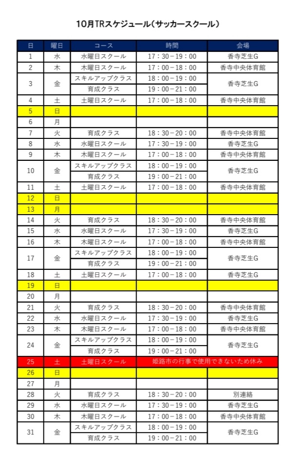 練習会場は各自「スケジュール」をご確認いただき、お間違えのないよう会場までお越しください